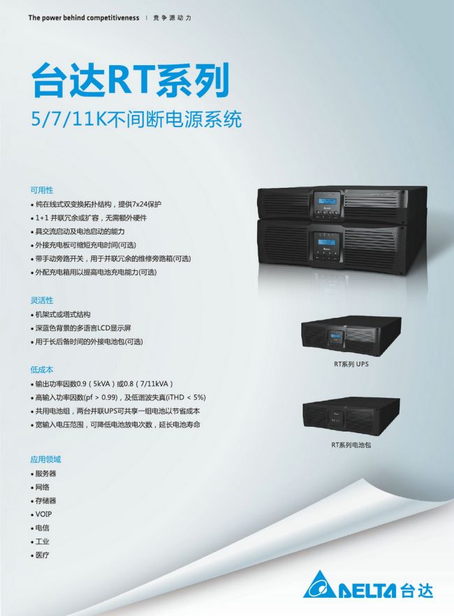 RT5K长机台达ups电源真正双变换在线式UPS可适用于19"或21"标准网络机柜,也可站立放置超薄高密度设计,为功率最大的3U高度机型宽广的电压输入范围,减少电池放电机会,延长电池寿命...